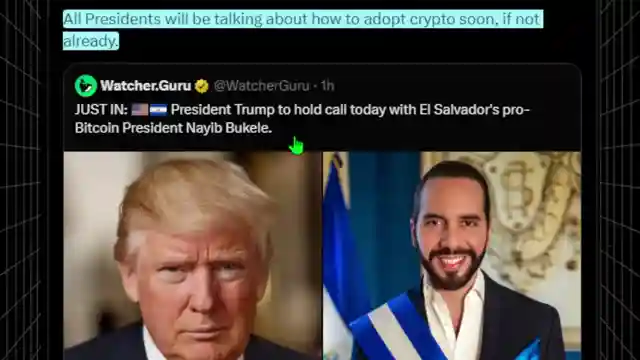 And if that wasn't enough to get your heart racing, Trump is set to have a pow-wow with El Salvador's Pro-Bitcoin president, Nayib Bukele. It's like witnessing a showdown between two heavyweight champions in the crypto arena. The market is revving its engines, ready to go full throttle at the slightest hint of a strategic Reserve announcement. This isn't just about money; it's about being part of a revolution that will reshape the financial landscape. So, grab your popcorn, folks, because the show is about to begin, and it's going to be one heck of a ride.